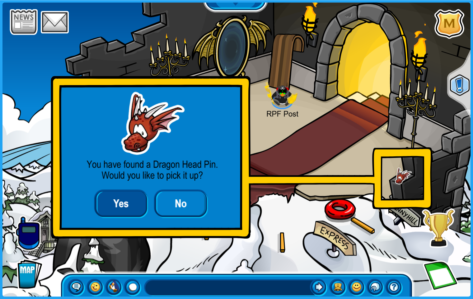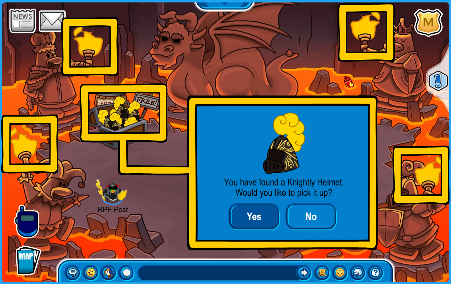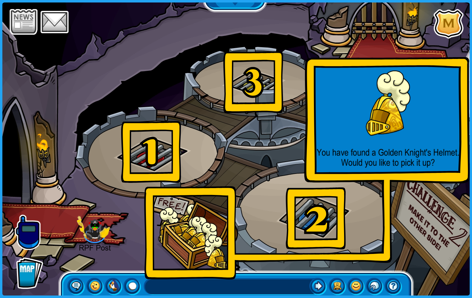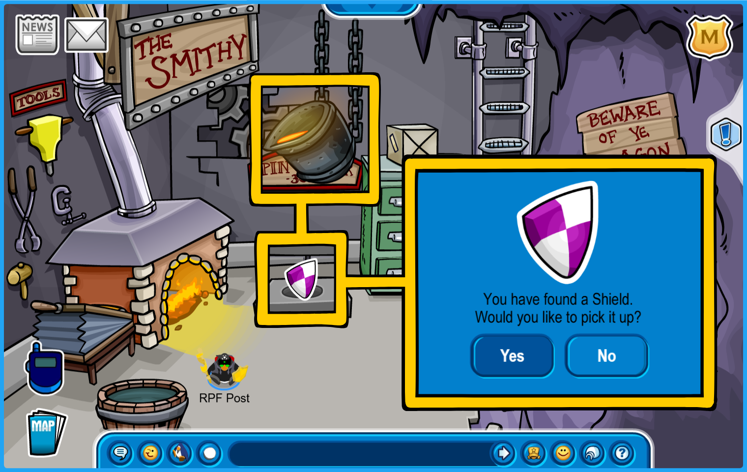 You are now ready for Ye Knight’s Quest in the Underground Pool, accessible by going through the Mines or through the manhole by the Pet Shop.