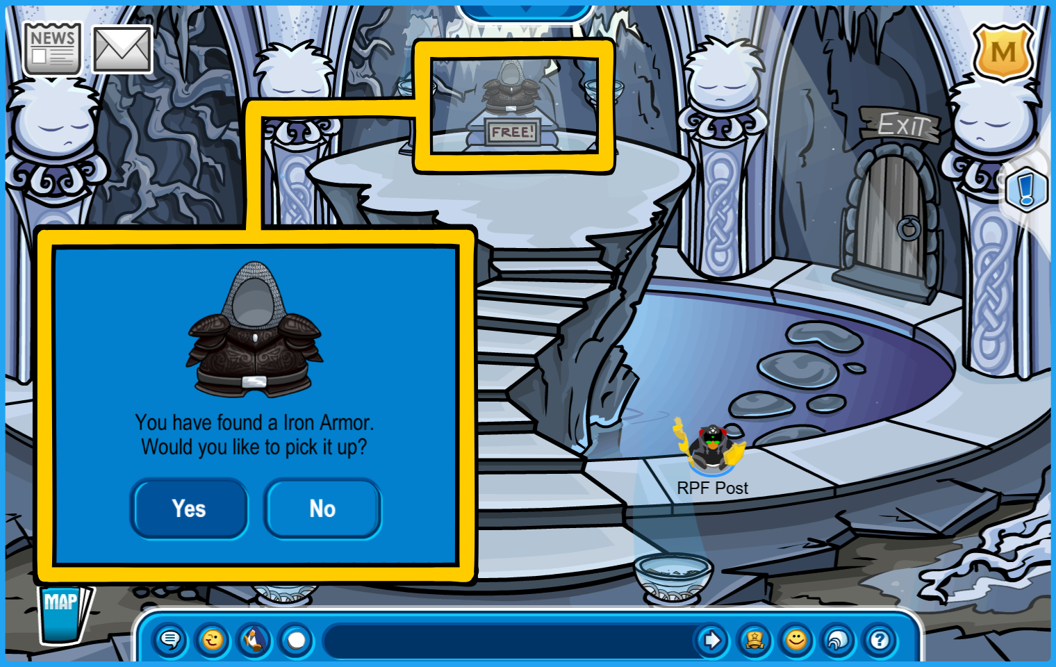 Room 4: The end of Quest I. Claim your free Iron Armor and exit through the door to the right to return to the Underground Pool.