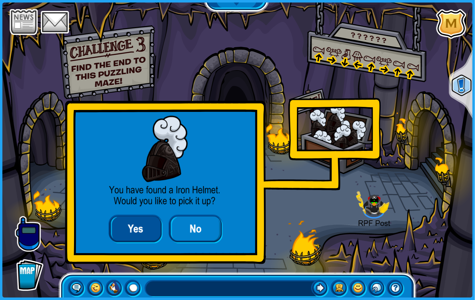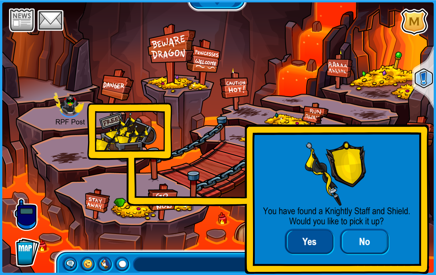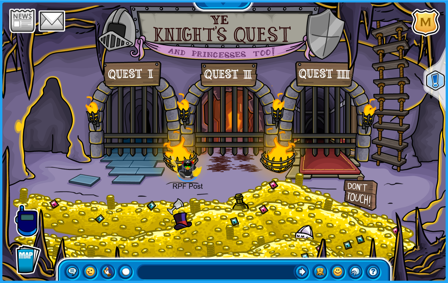 You are now ready for Ye Knight’s Quest in the Underground Pool, accessible by going through the Mines or through the manhole by the Pet Shop.