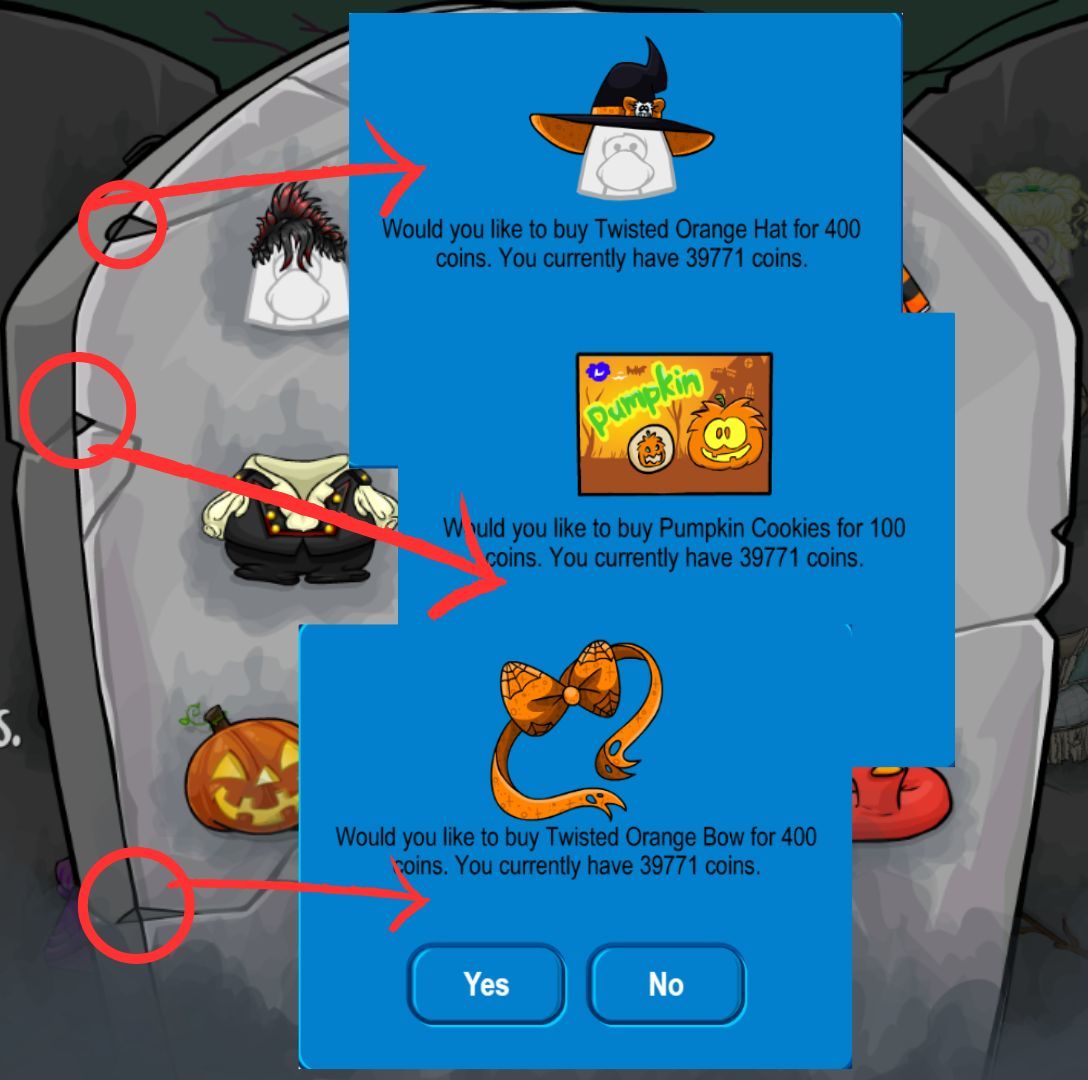 To go along with the Halloween party, the CPJ team have dropped some candies over the island! They are hidden in rooms accessible for all penguins (so there will be none in the Ninja Hideout, PSA HQ etc).