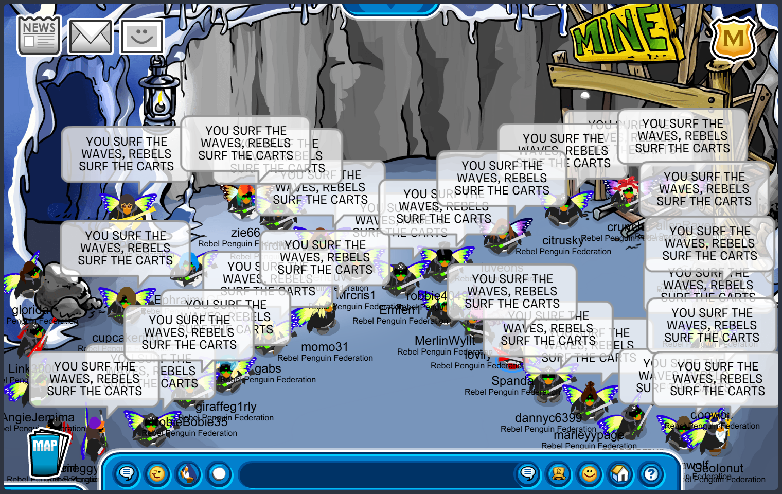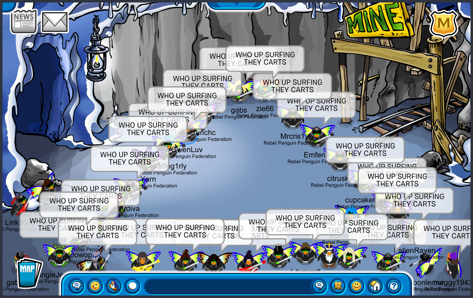 How amazing is it to be a penguin, but transform like a butterfly. Hello Rebels! Today we logged on to CPAB – Tuxedo and wore our butterfly wings out for some flutter tactics. After, we headed to Inside Mine for a Cart Surfer Tournament! Thank you to everyone who played. As always, there can only be one Cart Surfing master…