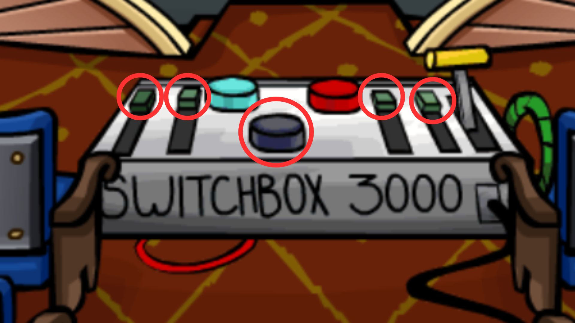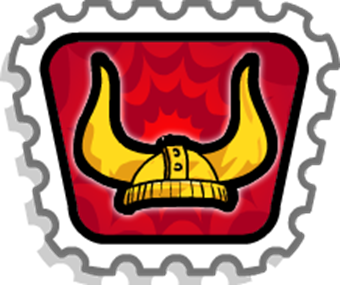 In order to obtain this stamp, you needs to enter the Stage and start using the Switchbox 3000. In no particular order, the 4 green sliders and the dark purple button in the middle must be clicked to retrieve this stamp and the item, Solid Gold Viking Helmet. The yellow lever can be clicked on to reset the puzzle.