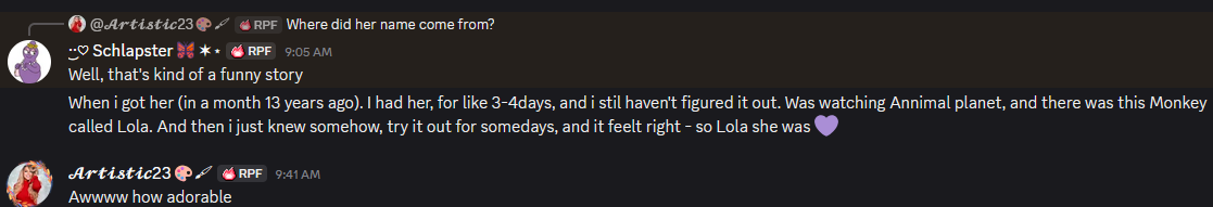Was watching Animal Planet. and there was this monkey called Lola, and then I just knew somehow.