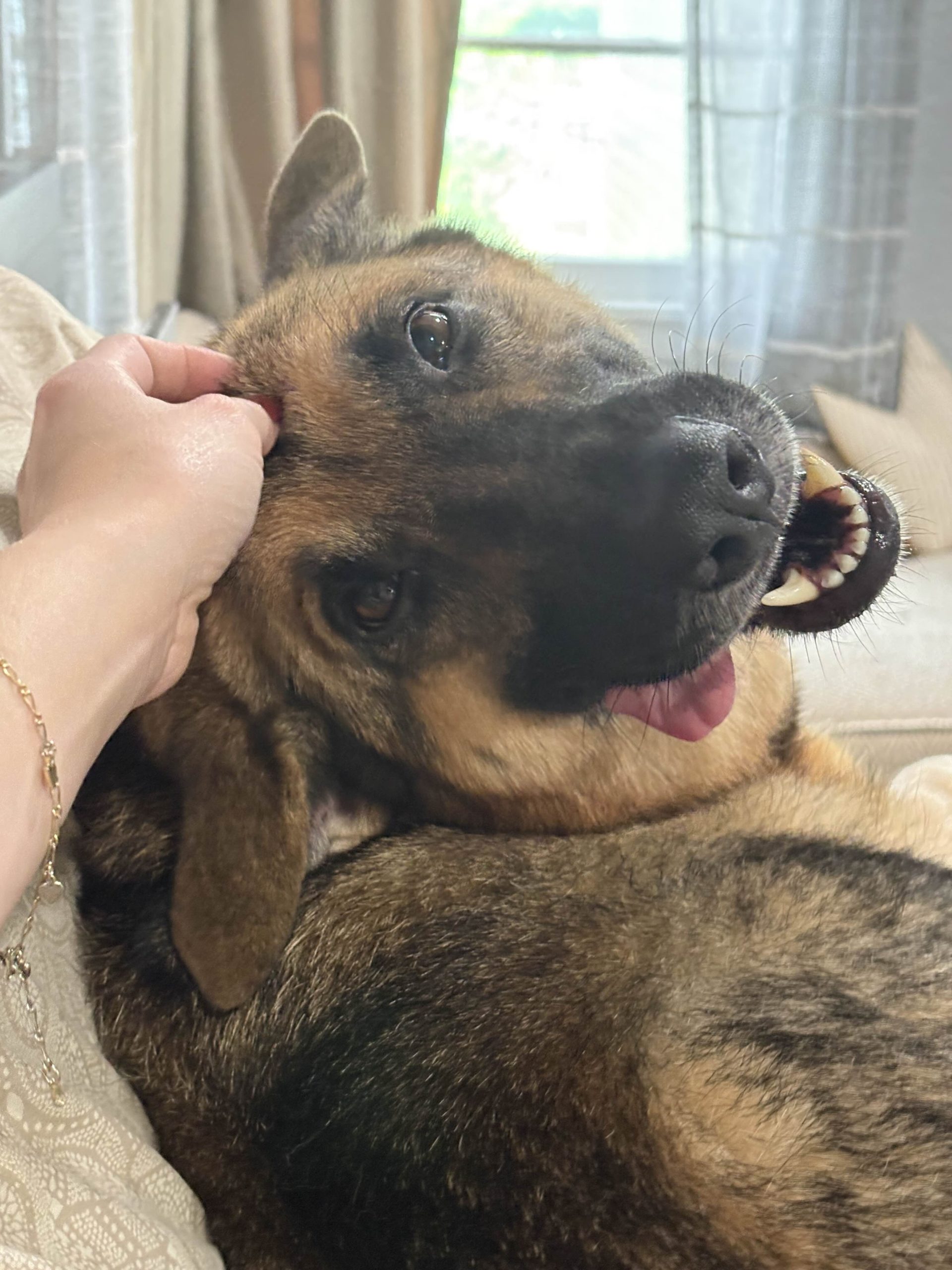 Doodle: So, she loves her toys. I’ve gotten toys that are meant to be destroyed and there’s another toy inside and she has never ripped it. She really loves and takes care of her toys. It’s so sweet. She loves to be chased and play tug of war.