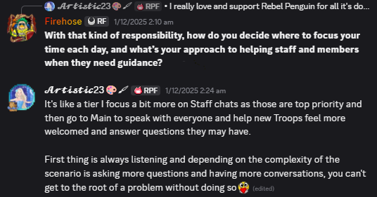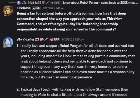 Welcome to the #108th edition of Troop Interviews! Each month, our team of interviewers (Firehose, Mollsr, Patty, Art, Lemur, and Ella) sits down with two or more Rebels to ask unique, personalized questions. Every interview is designed to highlight what makes each member of our community different, similar, and overall awesome! With so many members in the Rebel Penguin Federation, we cannot get to everyone right away, and the Rebel Broadcast Team truly appreciates your patience. We hope to feature you in a post someday!
