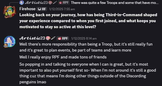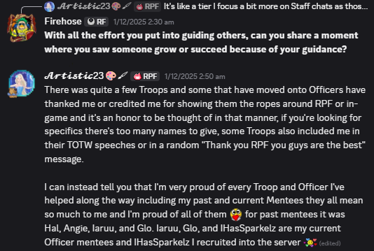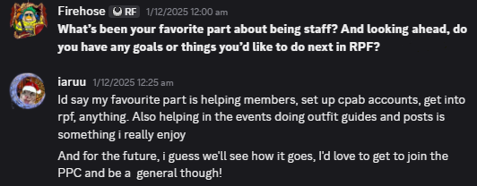 We love a helpful person enjoying what they do. We’re excited for Iaruu to go and achieve PPC and become General!