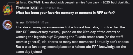 What’s been your favorite part about being staff? And looking ahead, do you have any goals or things you’d like to do next in RPF?