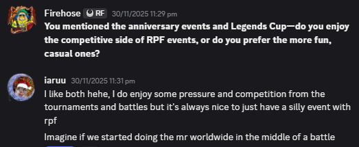 Do you enjoy the competitive side of RPF events, or do you prefer the more fun, casual ones?