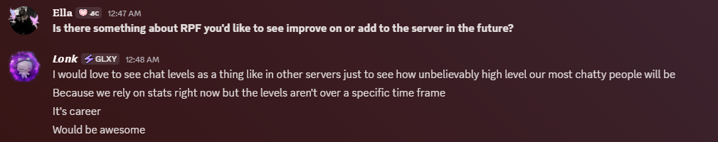 Is there something about RPF you’d like to see improve on or add to the server in the future?