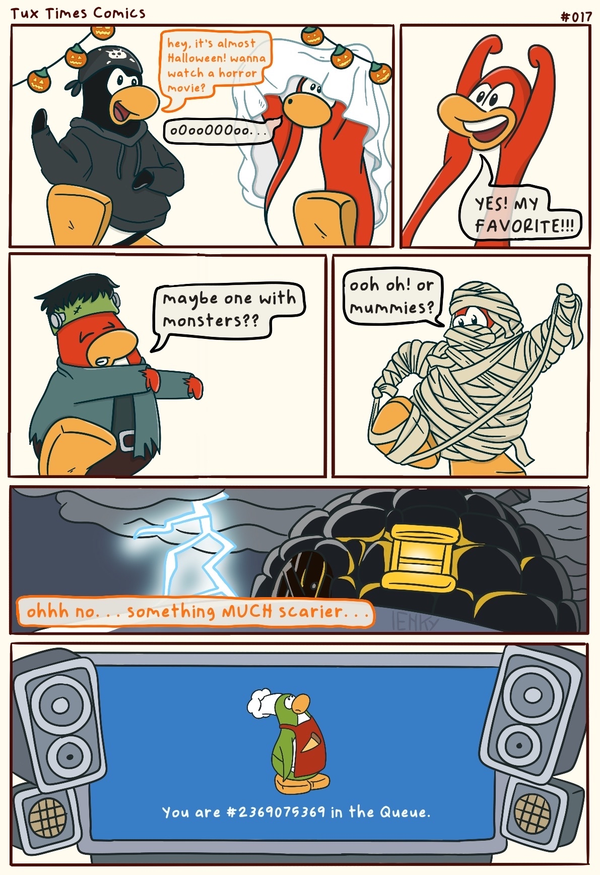 Knock knock! In this comic, Lemur paid homage to the infamous penguin movie franchise, Night of the Living Sled! Do you dare open the door?