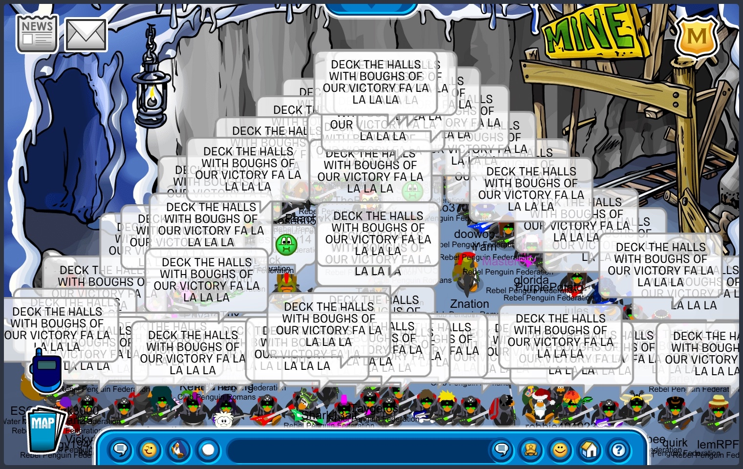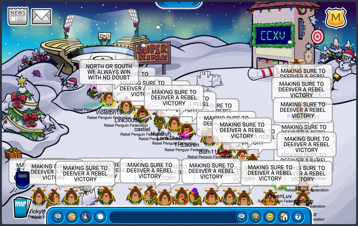 The fierce battle at the Semi Finals against the Army of Club Penguin was no easy feat. The Clovers fought with an undeniable force, and scores were neck-in-neck throughout the battle. After pushing into overtime, RPF emerged victorious! Now, we prepare to go up against the Aliens at the Grand Finals on Saturday, January 3rd! More battle times and information can be found in #ccxv-info.