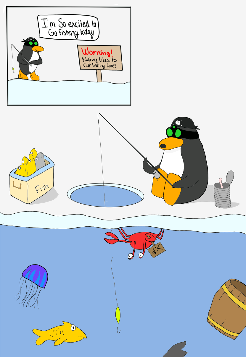 GONE FISHING! Making her comic debut, Ihasparkelz grabbed her trusty fishing rod for the Ice Fishing tournament, but a certain crab had other plans in mind…