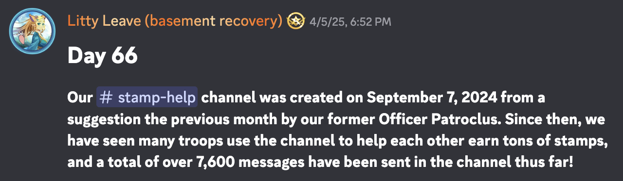 Even now as vet, Patro still has a big impact in RPF! When asked, “How does it feel to know that your contributions, like the Stamp Help channel and your blog, continue to make such a positive impact on so many people every day, even after retirement?“, Patro responded by saying ” It’s a really amazing feeling, especially as the stamp channel was only originally introduced under a trial basis – and I wasn’t even sure it would be used! The fact that it’s still going and is being used by so many players makes me really happy! And it’s also wonderful my blog still allows CP Journey players to find this awesome community, especially as I’ve started it back up again in August!”